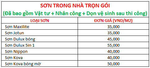 – Sơn trong nhà: